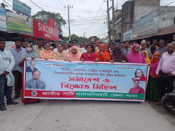 জ্বালানি তেলের মূল্য বৃদ্ধির প্রতিবাদে লালমনিরহাটে বিক্ষোভ মিছিল ও প্রতিবাদ সমাবেশ করেছে জেলা জাতীয় পার্টি।