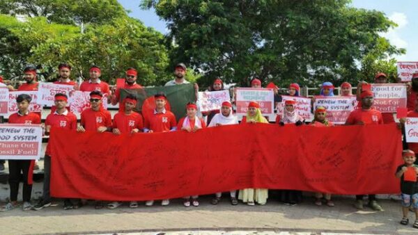 জীবাশ্ম জ্বালানি নির্ভর খাদ্য ব্যবস্থা পাল্টাও, সবুজ জ্বালানি নির্ভর খাদ্য ব্যবস্থা গড়ে তোল এই দাবিতে জনসমাবেশ অনুষ্টিত হয়। আজ বৃহস্পতিবার (২৩ অক্টোবর ২০২৫) সকাল ১১ ঘটিকায় রাজশাহীর লালনশাহ মুক্ত মঞ্চে WE THE 99, Fight Inequality Alliance (FIA) , উন্নয়ন গবেষণা প্রতিষ্ঠান বারসিক, বরেন্দ্র ইয়ুথ ফোরাম’র আয়োজনে গ্বোবাল রেড ক্যাম্পেইন এর অংশ হিসেবে জনসমাবেশে তরুণ-যুবসহ বিভিন্ন পেশাজীবীর মানুষ অংশগ্রহণ করেন।