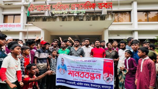 জামালপুরের ইসলামপুর উপজেলার গুঠাইল বাজারে ১০ বছরের এক শিশুকে ধর্ষণের অভিযোগে শিলদহ সরকারি প্রাথমিক বিদ্যালয়ের প্রধান শিক্ষক শামীমকে দ্রুত গ্রেফতার ও সর্বোচ্চ শাস্তির দাবিতে মানববন্ধন অনুষ্ঠিত হয়েছে।