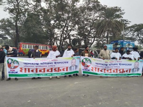 নড়াইল জেলা বিএনপির সাধারণ সম্পাদক আলহাজ্ব মোঃ মনিরুল ইসলামের এর দলীয় মনোনয়ন বাতিলের প্রতিবাদে মানববন্ধন ও বিক্ষোভ সমাবেশ অনুষ্ঠিত