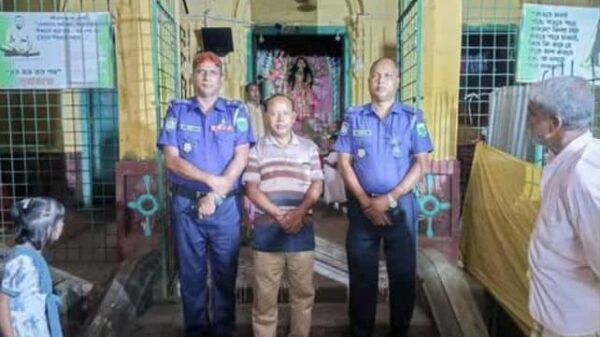 সোহেল রানা,রাজশাহী,প্রতিনিধি: হিন্দু ধর্মাবলম্বীদের বৃহত্তম ধর্মীয় উৎসব শারদীয় দুর্গাপূজা ঘিরে রাজশাহীর তানোর উপজেলায় আইনশৃঙ্খলা পরিস্থিতি স্বাভাবিক রাখতে বিভিন্ন পূজা মণ্ডপ পরিদর্শন করেছেন তানোর থানার অফিসার ইনচার্জ (ওসি) আফজাল হোসেন।